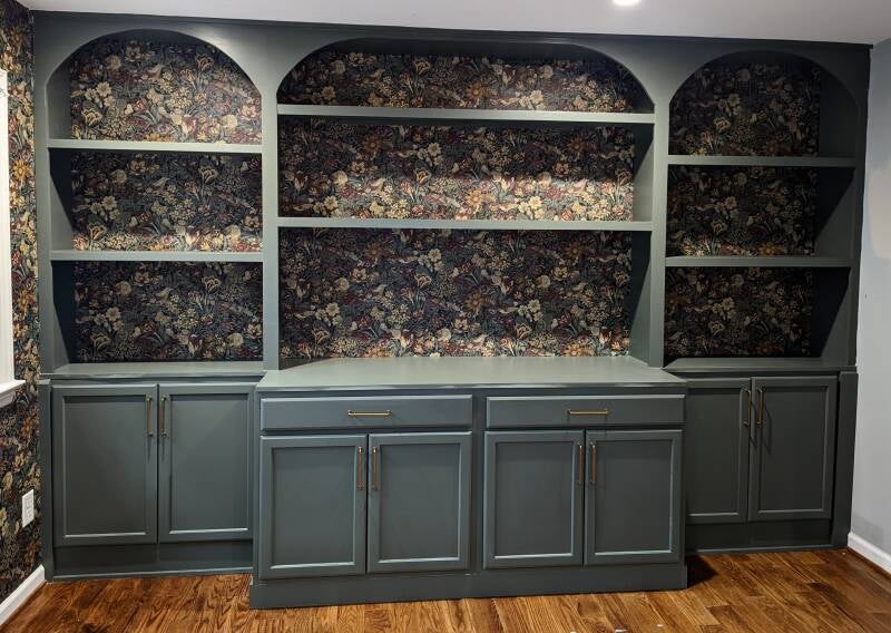 Our home office was in desperate need of more storage and naturally, I used this as a reason to add major character to our home. I knew that I wanted to use wall paper for this project and ran across this wallpaper picture and I immediately knew this was the vibe I was looking for.
