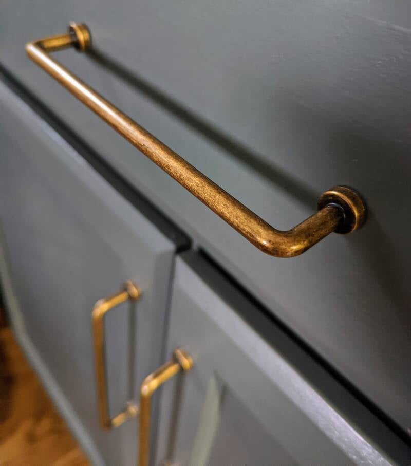 Antique brass was the obvious choice for my vintage inspired cabinets. I used these pulls to complete the project.